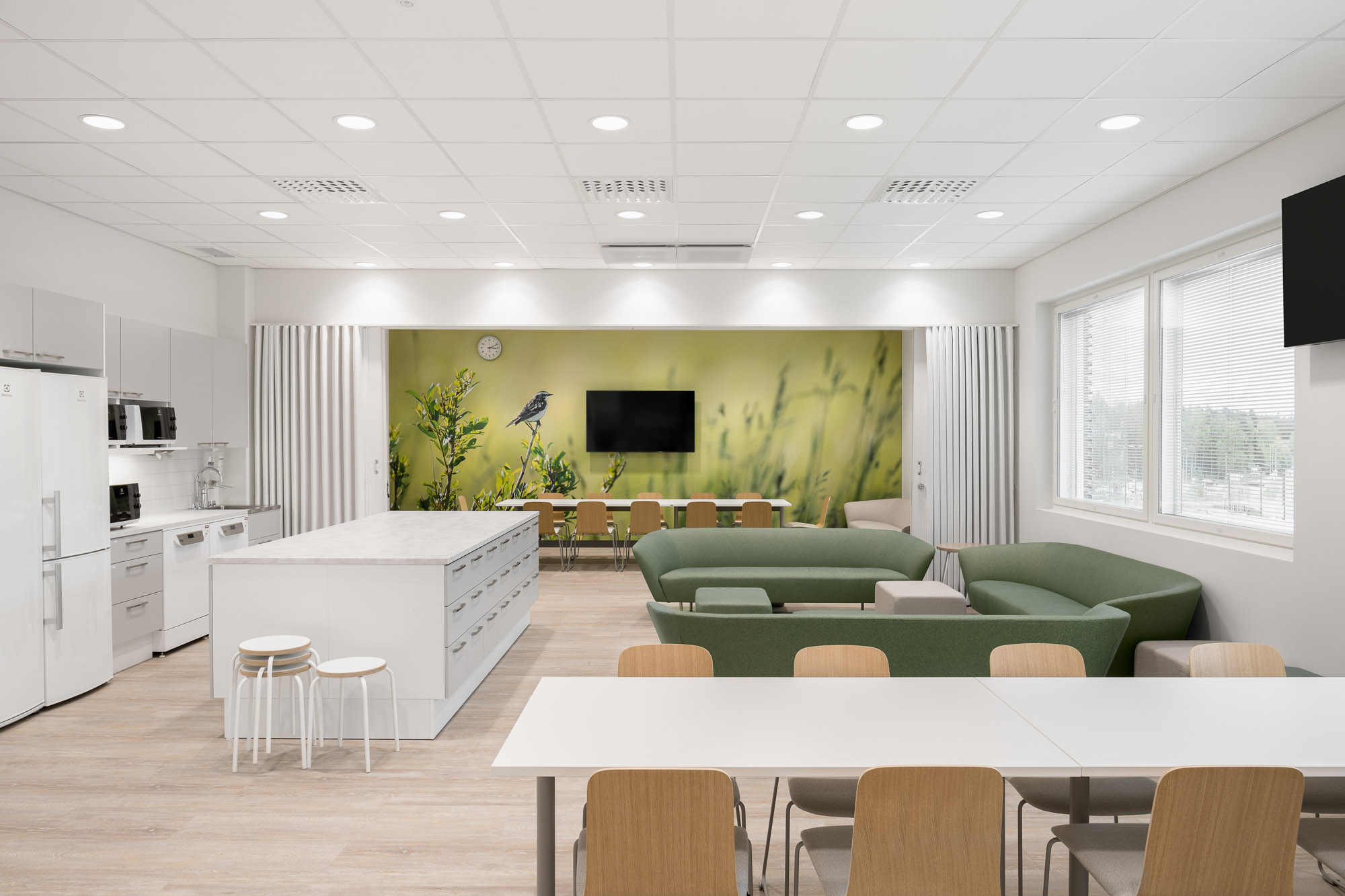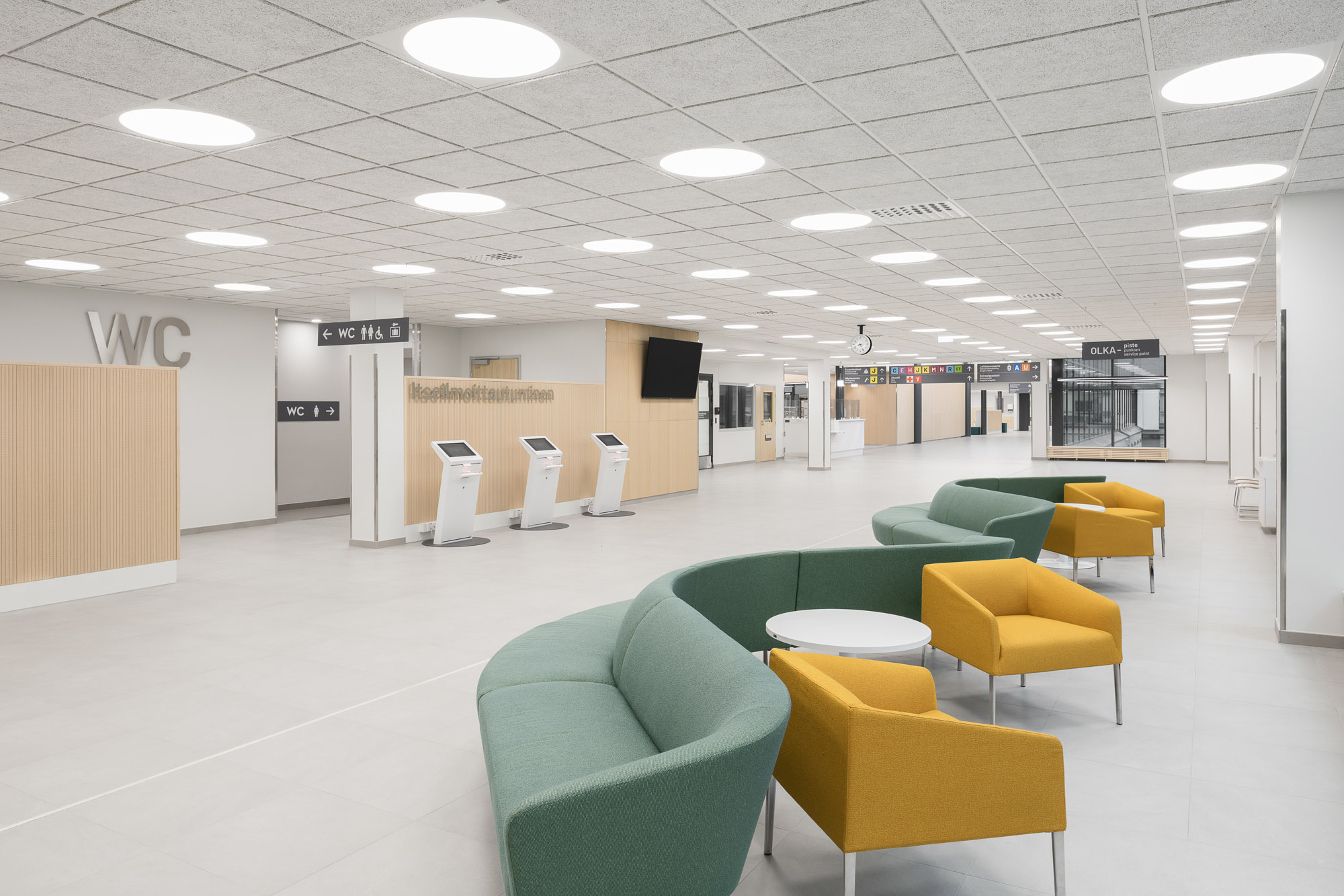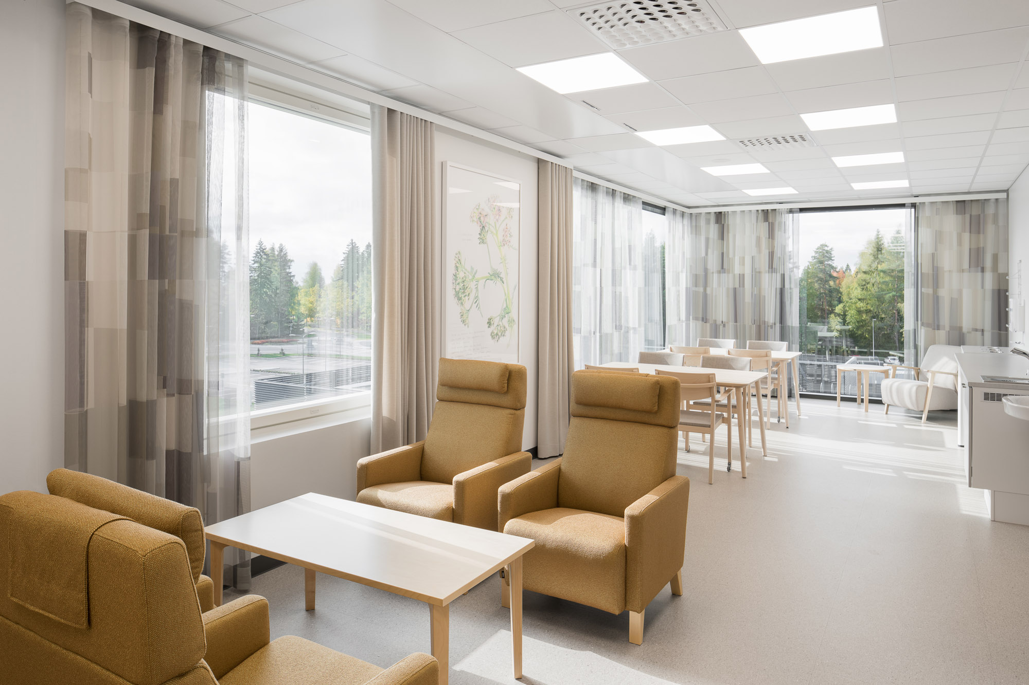 Viihtyisän sisustuksen toivotaan vievän ajatuksia pois hektisestä ympäristöstä. Hoitohenkilökunnalle uudet tilat tarjoavat toimivan, tehokkaan ja miellyttävän työympäristön.