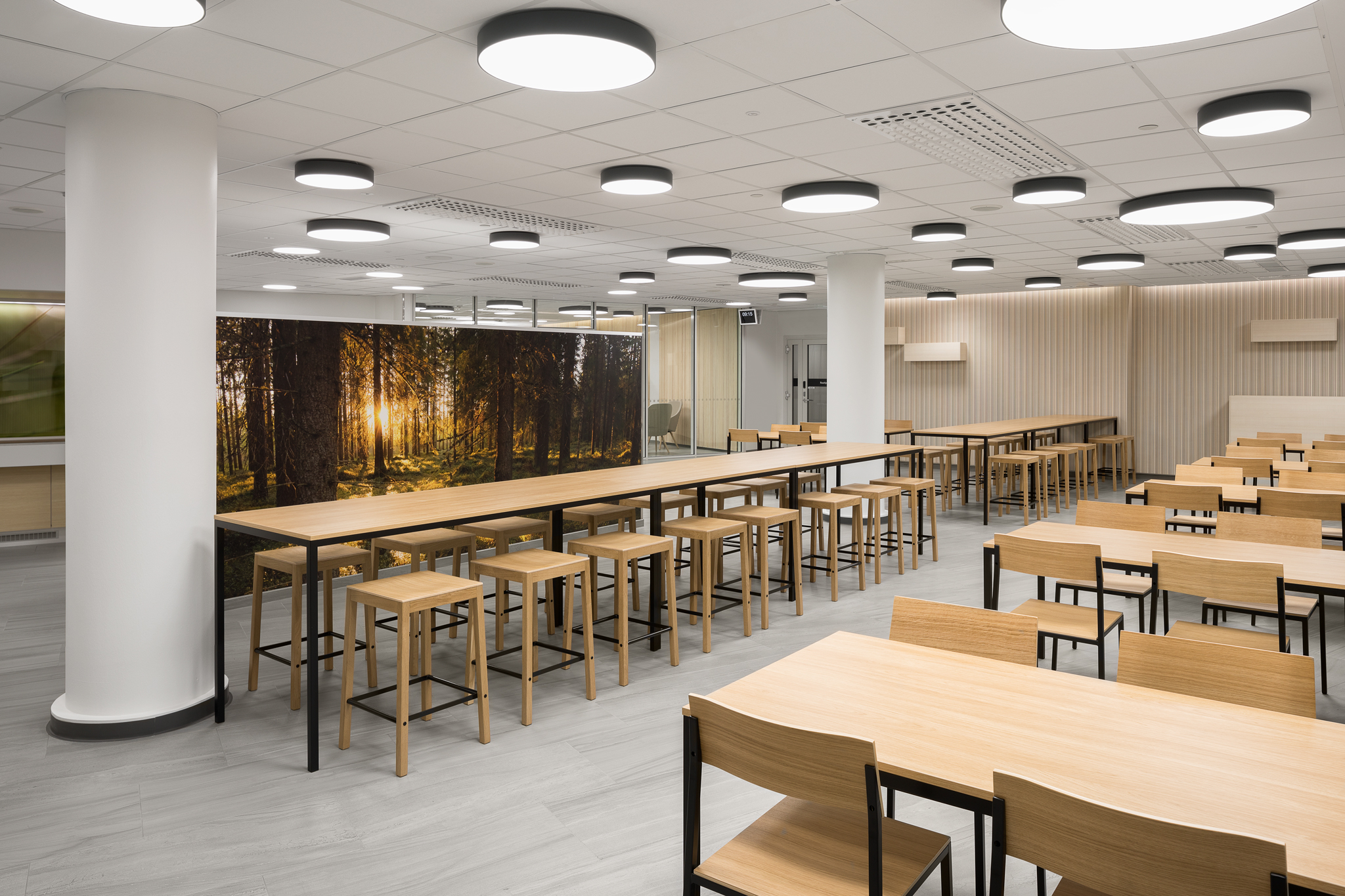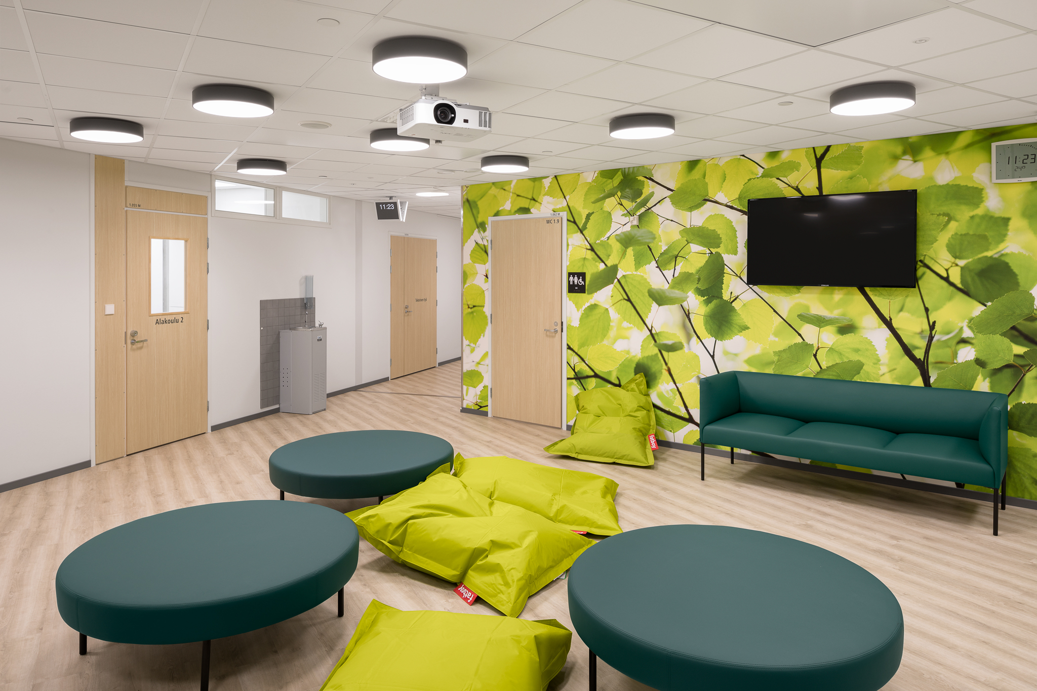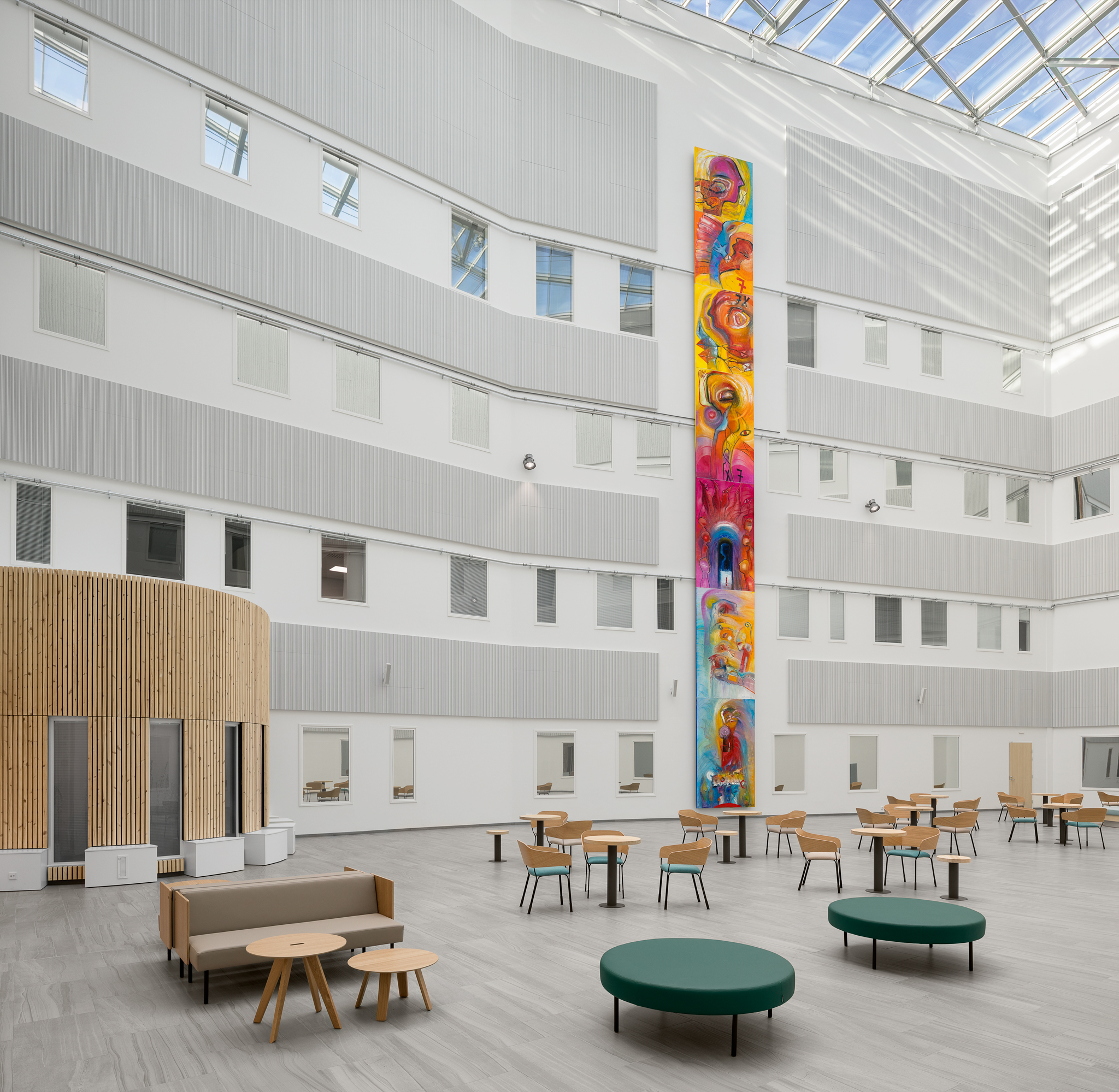 Kyrkösjärven rannassa sijaitsevan rakennuksen toiminnot sijoittuvat seitsemään kerrokseen. Kaikista tiloista on näkymä lasikatetuille sisäpihoille tai ulos ympäristöön, mikä tuo rakennukseen runsaasti päivänvaloa ja lisää tilojen viihtyisyyttä. Sisätilojen väritys, valaistus, materiaalivalinnat ja taide mukailevat luonnonlähiestä teemaa.