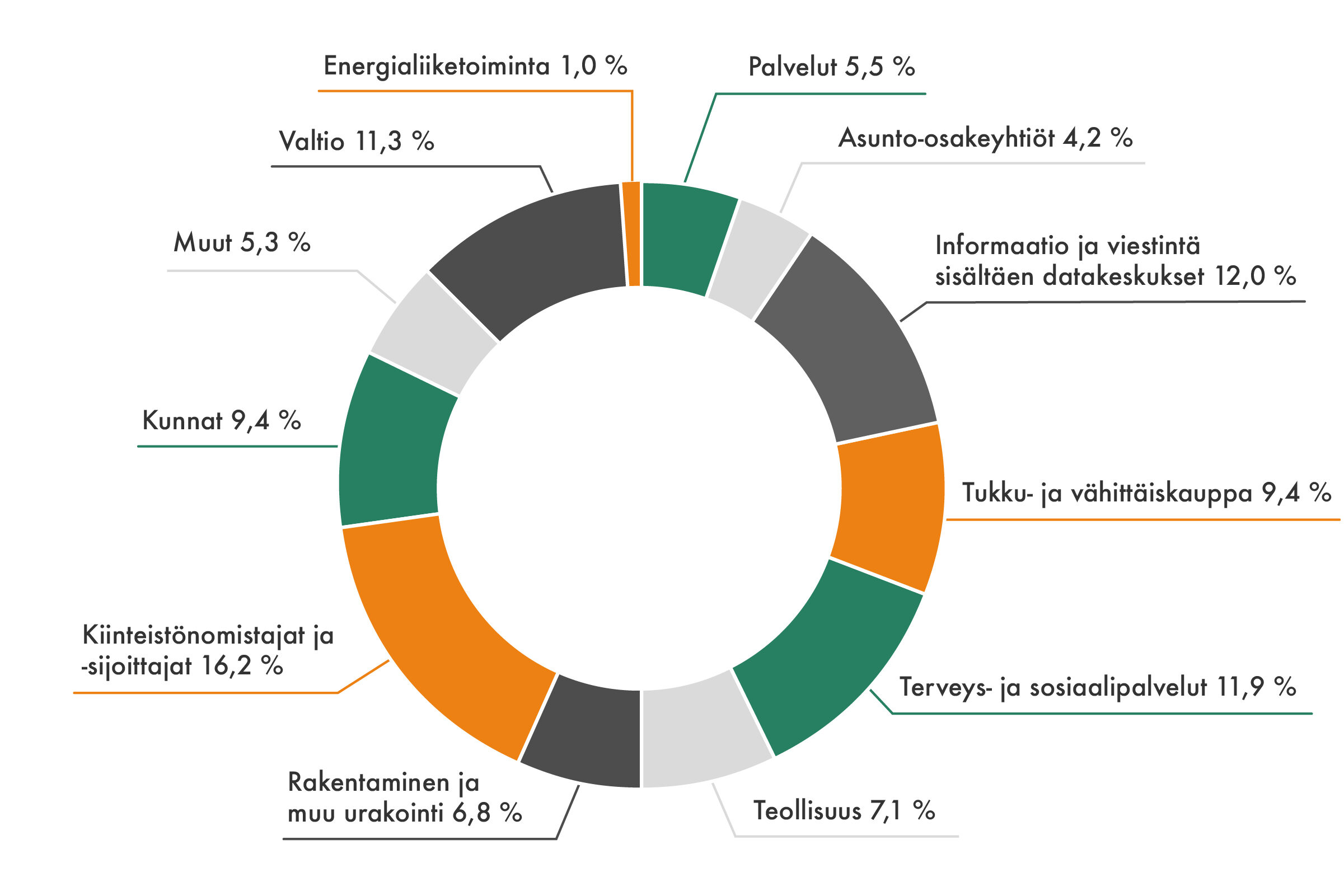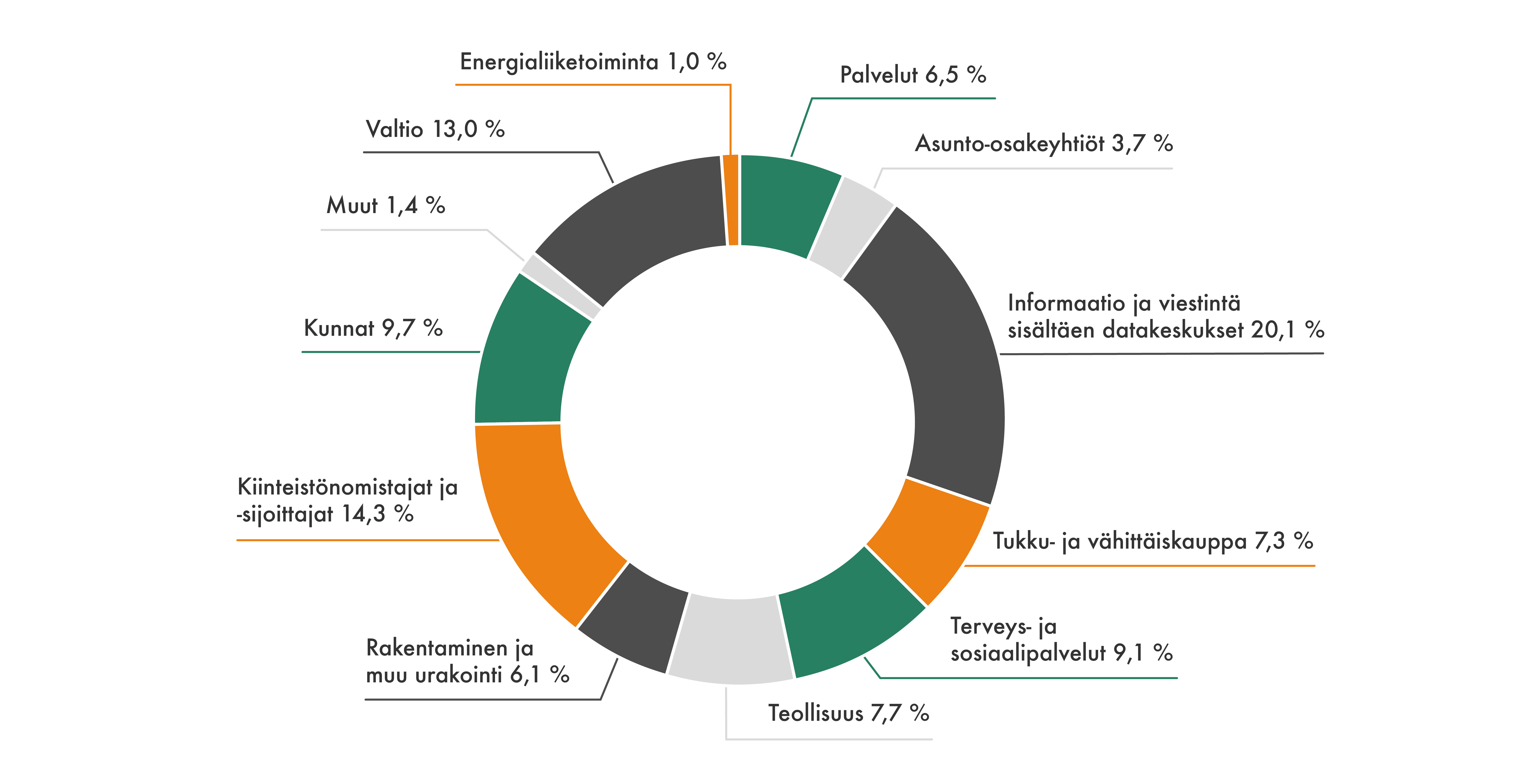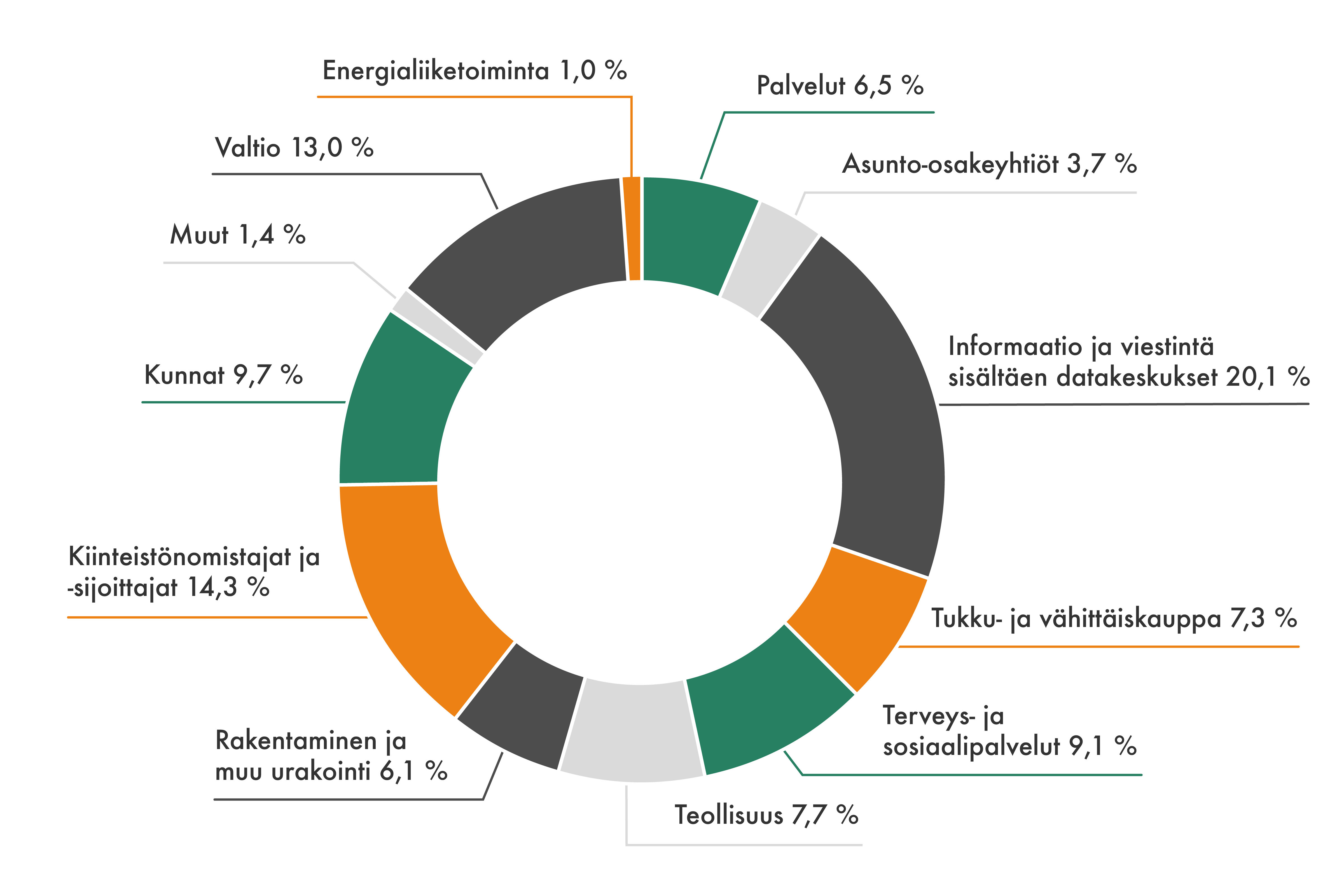 - Useat datakeskushankkeet, esim. XTX Markets